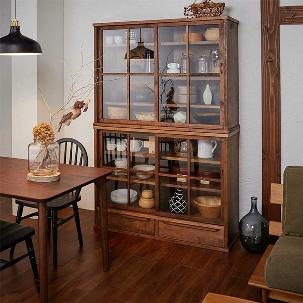 5번: 루덴 주방 찬장 엔틱 빈티지 찻장 커피장 원목 그릇장 세트, 월넛