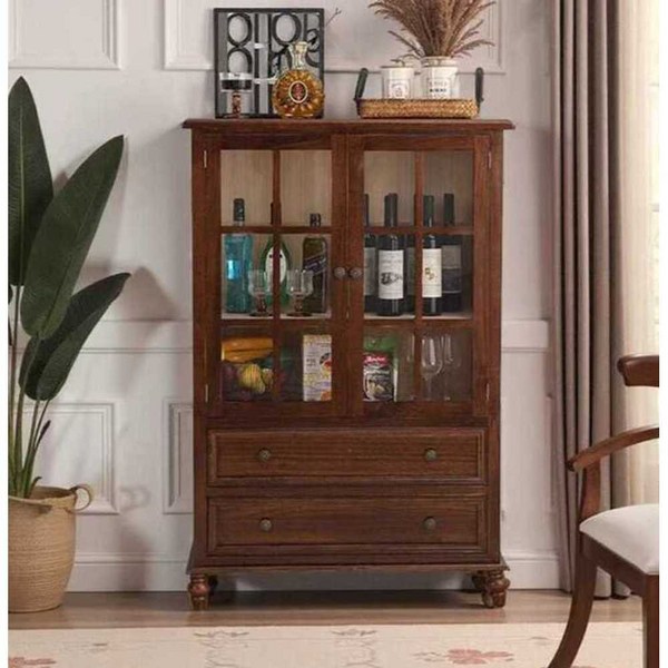 8번: 나무로만 레트로 원목 2단 미니 와인장 원목 옛날 그릇장 찬장