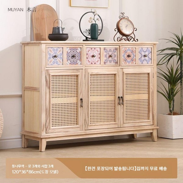 21번: 빈티지그릇장 엔틱수납장 고전가구 원목 수입, 이중 문, 원목+문양 120x36x86cm