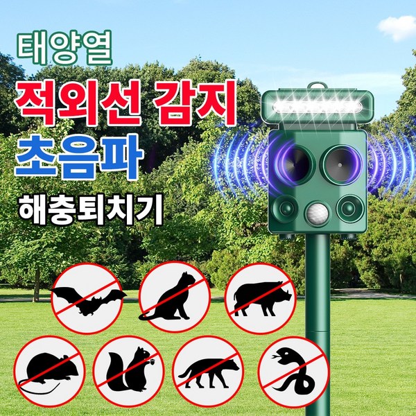 29번: 차우 야생동물 퇴치기 태양광 적외선 강력진동 초음파 LED 경고음, 태양광유해동물퇴치기(1개)