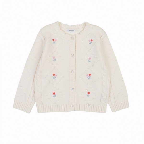 23번: 아가방 NC엑스코점 2025신상! 부드러운 터치감! 아이보리컬러로 어디에든 코디하기 좋은! 귀엽고 발랄한 메이튤립자수가디건! 여아 가디건! 외출복! 선물용으로도 좋아요