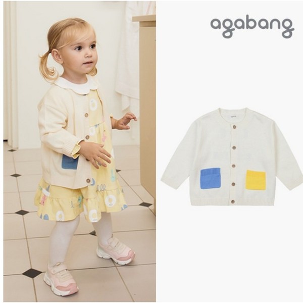19번: [아가방] 이월파격할인 60% 봄가을 간절기 남아 여아 공용 찰랑한 느낌 주머니 포인트 라운드 니트 가디건 외출복 등원룩 어린이집 제이컬러니트가디건01Q13140502_2001분당
