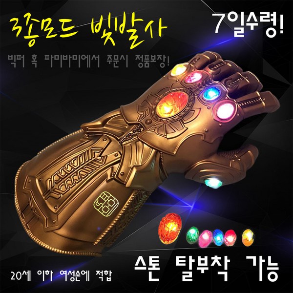 2번: [상품주문시 판매자 (파미바미) 확인] 인피니티 타노스 건틀렛 어벤져스 엔드게임 아이언맨 장갑 손 팔 무기 디즈니 나노 파워 건틀릿 LED 스톤 건들렛 크리스마스 아들 딸 생일선물, 1.레드 소형(탈부착가능 파미바미에서 주문시에만 정품), 1개