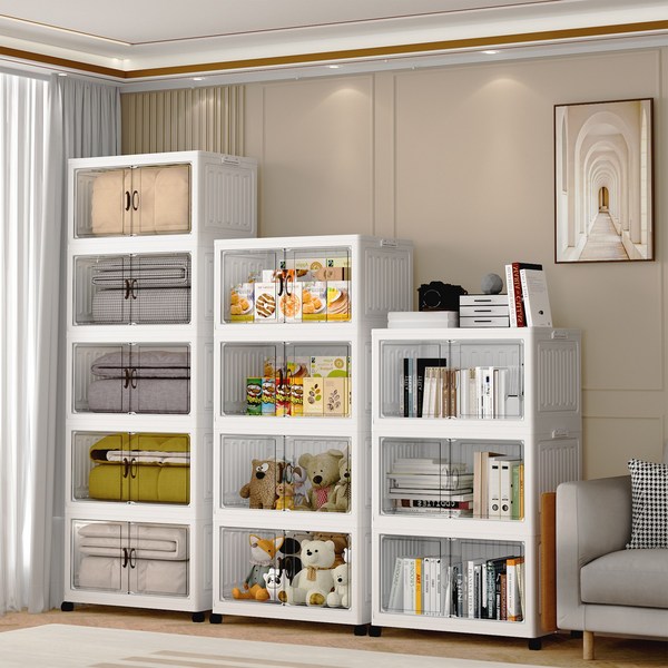 5번: Kleeno 접이식 설치 면제 양문 수납장 3단 4단 5단 이동식 다용도 수납장 가정 베란다 거실용 수납장 간식 장난감 수납장 리빙박스 정리함 수납함, 3층