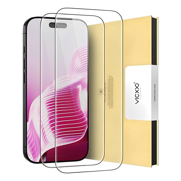 19번: 에이치오유 아이폰 3D 풀커버 저반사 지문방지 9H 강화유리+원 터치 가이드툴 세트 무지개 무늬 방지 15 프로 16 프로 맥스 15 16 플러스액정보호필름 휴대폰 보호필름, 2개