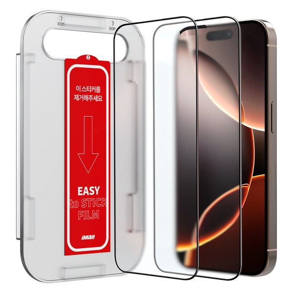 27번: 아이몰 쉽게 붙이는 지문방지 저반사 풀커버 아이폰 강화유리 액정보호필름 2매 + 가이드툴 세트, 1세트