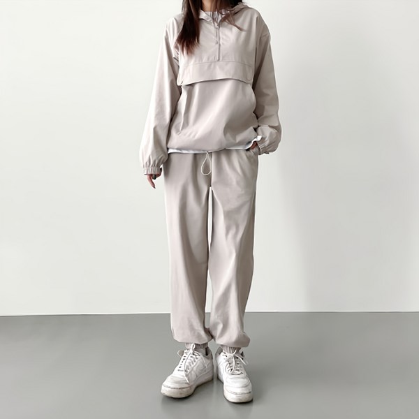 8번: 잘빠진 여성용 어반 아노락 반집업 조거 상하의 세트