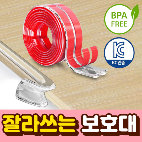 27번: [국내KC인증] 말랑베이비 잘라쓰는 모서리 테이프 2M + 코너 보호대 4개, 투명, 1세트