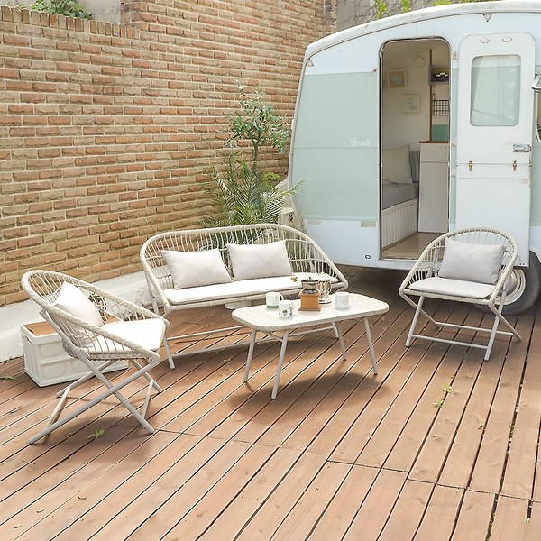 10번: 버드 홈 체어 2개 라탄 야외 인조라탄 테라스 해변 안락 아카풀고 휴양지 의자, 화이트