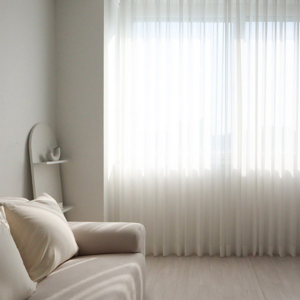 19번: 이음선없는 밀크 차르르 쉬폰커튼 + 저소음 고급레일 세트 방문설치