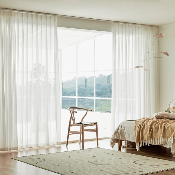 10번: 한샘 나비주름 비침 없는 밀크 쉬폰 속커튼 + 레일 세트 방문설치